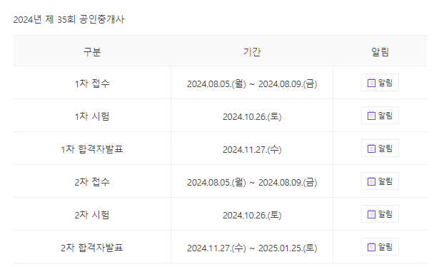 1차, 2차 접수 2024.08.05(월) ~ 2024.08.09(금)