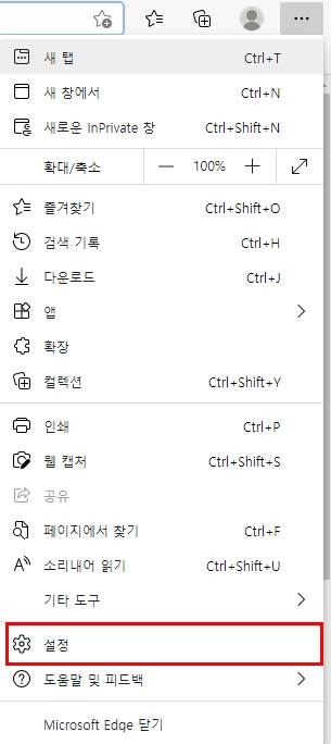 2. 아래 톱니바퀴모양 설정에 들어간다.