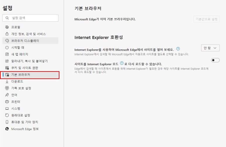 3. 설정에서 기본브라우저로 들어간다.