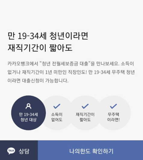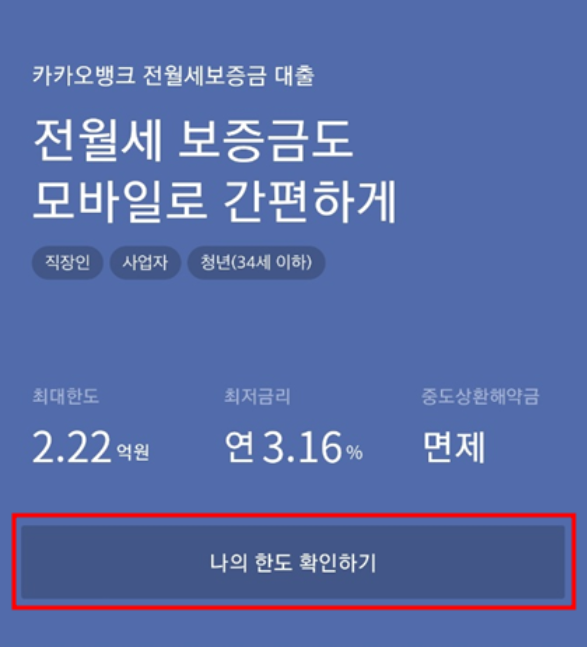 카카오전세대출의 경우 나의 한도 확인으로 한 번에 확인 가능했습니다.