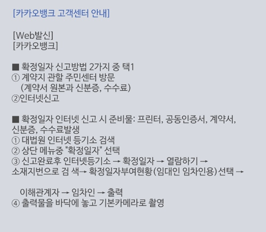 확정일자까지 신청을 넣으면 2~3주 후 카카오 심사하는 직원분에게 전화 와서 ~~~서류를 준비해달라고 합니다.